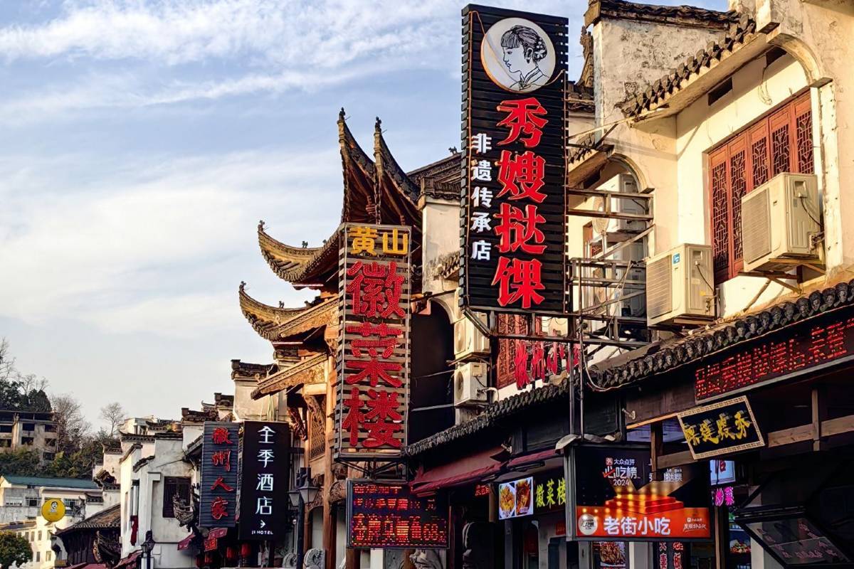 徽州文化の息づく屯渓老街 (読み方:トゥンシーラオジェー)は、宋代から続く歴史ある商店街で、黄山観光の際に外せないスポットです。夜には赤い提灯が灯り、昼間とは違う幻想的な雰囲気に包まれます。見どころは、徽墨(高級墨)や硯の工房伝統茶葉「黄山毛峰」を味わえる茶館、地元民も通う老舗レストランなどです。土産物屋では手作りの竹細工や刺繍も購入でき、散策するだけで徽州の文化を体感できます。無料で楽しめるため、黄山登山前後のちょっとした散策にぴったり。歴史とグルメ、フォトジェニックな風景が詰まった老街は、旅の思い出作りに最適です。