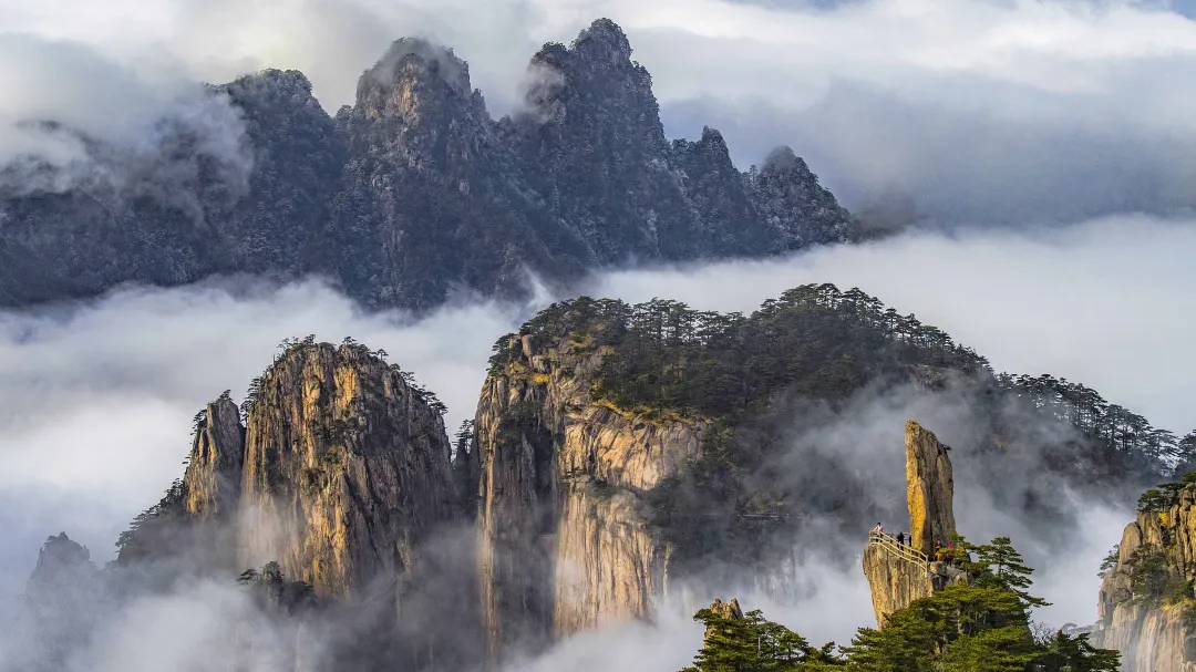 安徽省南部にそびえ立つ三山の一つ、黄山(読み方:ファンシャン)は「天下の絶景」と称される中国随峰の名山です。雲海に浮かぶ奇岩、幻想的な日出、そして四季折々の美しさが特徴。松が風雪に耐える姿は「黄山松」として有名で、まるで水墨画の世界に迷い込んだよう。