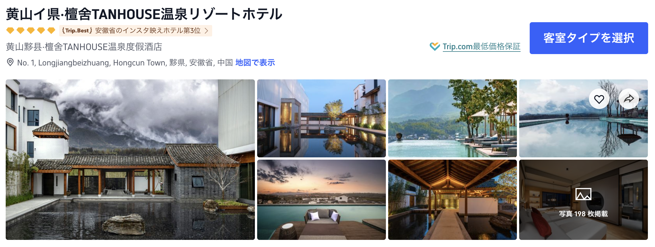 2023年に開設したホテル。中国の伝統的な建築様式を現代的にアレンジし、庭園風のデザインと一歩一景の設計が特徴です。写真映えするスポットとしても人気を集めています。宏村に近く、アクセスも便利です。