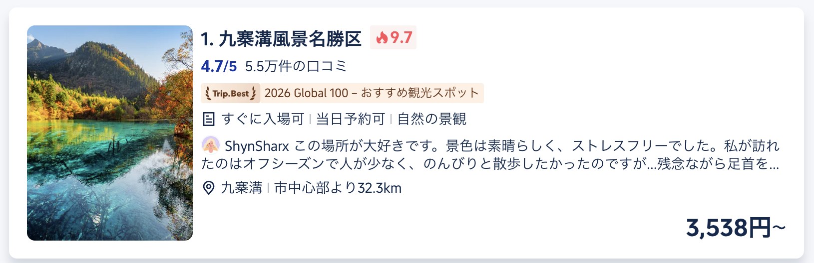 8月|九寨溝:水の色に感動