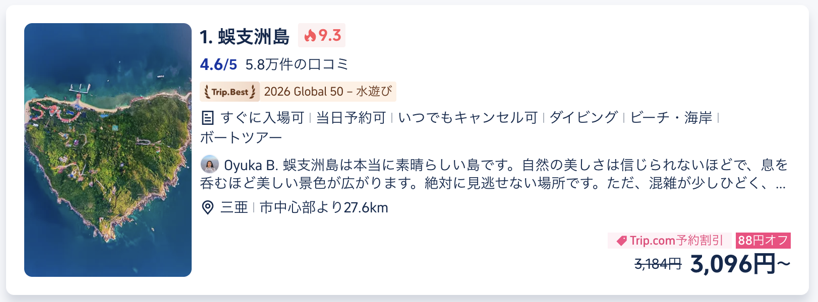 • 南山文化観光区: 海に立つ巨大な「南山海上観音」は必見