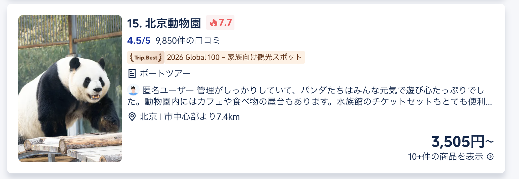 - 理由:どちらも地下鉄で直結する都市部にあり、時間をかけずにパンダと会えます。北京動物園は歴史的な庭園も楽しめ、オーシャンパークはアトラクションも充実しています。