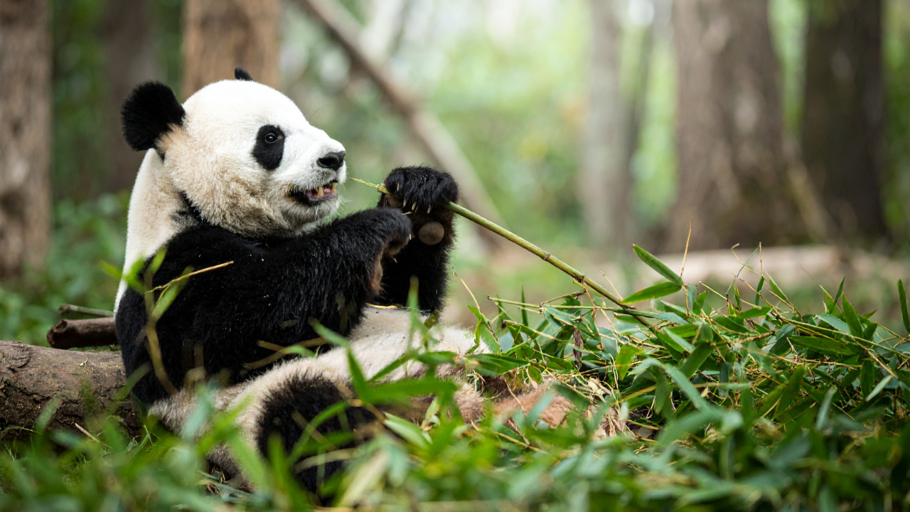 食事:パンダは一日に14時間も食事に費やし、12~38kgの竹を食べます。これは体重の約40%にも相当する量です。竹の栄養価が低いため、これだけ大量に食べる必要があるのです。